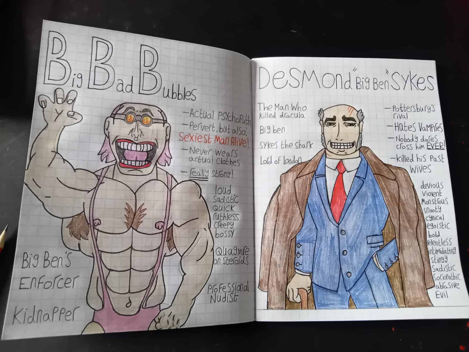 “I drew my favourite bash street kid character, I’m going to paint it next week it is going to the EXHIBITION!”